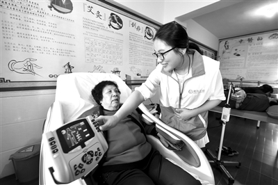 保险业内人士分析认为,伴随民众保险意识的不断提升,“医疗+重疾”的商业保险保障有望成为越来越多保险客户的“标配”。这也将为健康险市场转型提供更强劲的动力。图为3月27日,护理员在福建省晋江市磁灶镇大埔村敬老院中医康复室为老人操控按摩椅。记者宋为伟摄