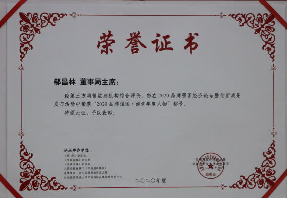 品牌是一个企业的无形资产,也是一个国家实力的象征。中国品牌如何从制造向创造转型、从速度向质量转变成为重要课题。近日,2020品牌强国经济论坛暨(第四届)创新成果发布活动在京隆重举行,中国(润银)股份资产管理有限公司董事局主席郗昌林荣获“2020品牌强国·经济年度人物”奖。