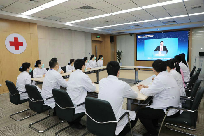 今年是中国医院人文品牌峰会连续举办的第三年,前两届分别在江苏常州及广西柳州召开,原定于在京召开的第三届因疫情改为线上召开,据会议当天实时数据显示,超6万人次在线上收看。截止目前,苏州科技城医院在该峰会三年度评选中累计获评首批中国人文建设品牌医院、中国公益医院风云榜单项奖4个、中国人文建设风尚案例2个、中国医院人文建设先进个人3人次,在全国位居前列。当天,中国生命关怀协会医院人文建设专委会副主委、苏州科技城医院副院长吴雪良及文化品牌建设委员会部分成员代表在行政二楼会议室集中收看。