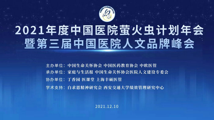 12月10日,由中国生命关怀协会、中国医药教育协会和中欧医管主办,家庭与生活报和中国生命关怀协会医院人文建设专委会共同承办的第三届中国医院人文品牌峰会在线上隆重举行。国家卫健委规信司司长毛群安作为分享嘉宾出席峰会,中国生命关怀协会代理事长李小琳和中国医药教育协会会长黄正明分别为峰会致辞。