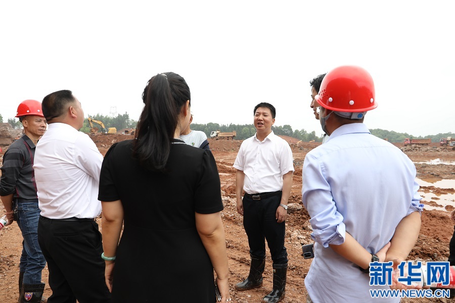 芦溪镇干部在施工现场调度施工。新华网 王中庆 摄