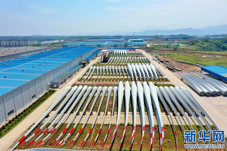 中材科技(萍乡)风电叶片公司生产的风电叶片。新华网发 王强 摄
