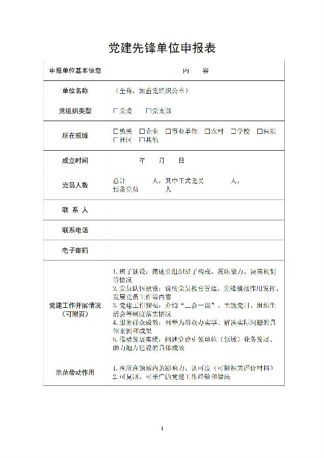 党建先锋单位申报表