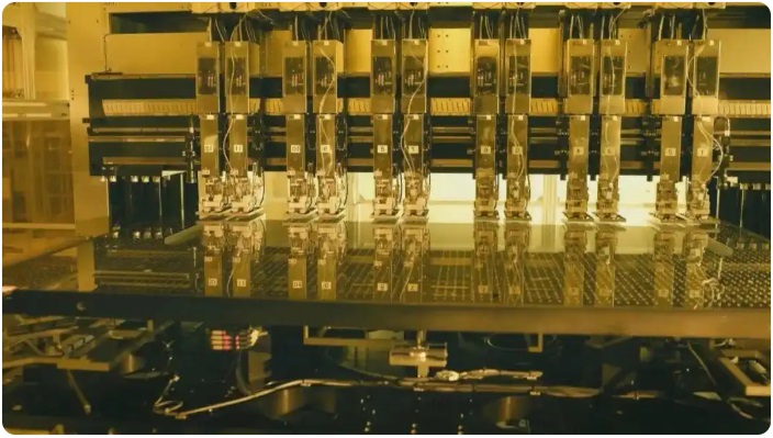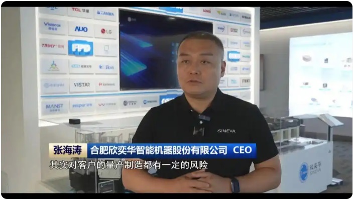 我们现在来到的是位于合肥欣奕华公司的产品展厅,我身后这面墙展示了企业在全球的上下游产业链客户,涵盖了新型显示、半导体、光伏等多个领域的上百家龙头企业,其中,大部分都集中在长三角区域。