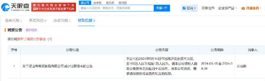 据媒体报道,梁山县市场监管局在接到反馈后,第一时间赶往涉事公司现场进行处理。除了接受到相应的处罚外,天眼查工商信息还显示,该企业还进行了大幅注册资本的减资操作:注册资本由100万人民币锐减到1万元。