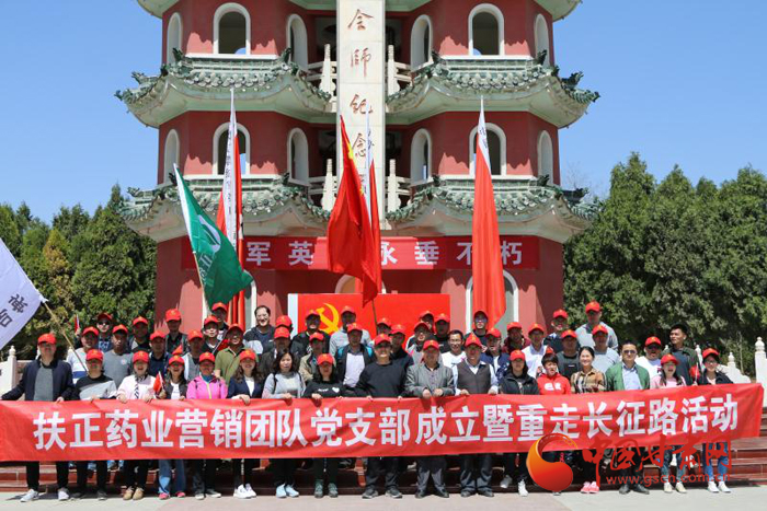 甘肃扶正药业开展了以“追寻红色印迹、熔铸扶正之魂”为主题的重走长征路活动,从定西西巩驿镇出发,用竞赛的方式徒步20公里,在会宁会师塔下进行党员宣誓、宣布扶正药业营销团队党支部成立,以此缅怀先烈、不忘初心、继续前行。