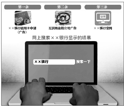 据业内人士透露,之所以在搜索一些银行等关键词时会出现广告,是搜索网站开放了这些关键词作为广告投放,当用户搜索到这些关键词如“XX银行”时,相应的广告就会展示;如果该关键词有多个广告主购买,就会根据竞价排名原则展示。用户每在搜索网站上点击一次展示广告,广告主就需要根据出价向搜索网站缴纳相应费用。
