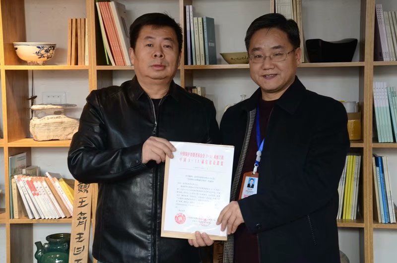 中国3·15诚信建设联盟主任吴建峰向陕西一品青莲商贸有限公司总经理郭丁晓颁授