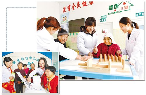 上图 日前,在河北临西县周楼村“健康小屋”内,医护人员指导村民康复训练。 新华社记者 朱旭东摄