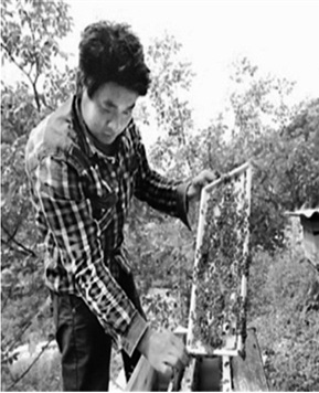 张朝栓,由于勤奋好学,短短 5个月时间,他的蜂种从20箱发展到33箱,产的蜜卖了4000元,成为当地自立自强的楷模。 | ||