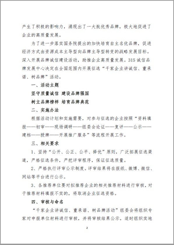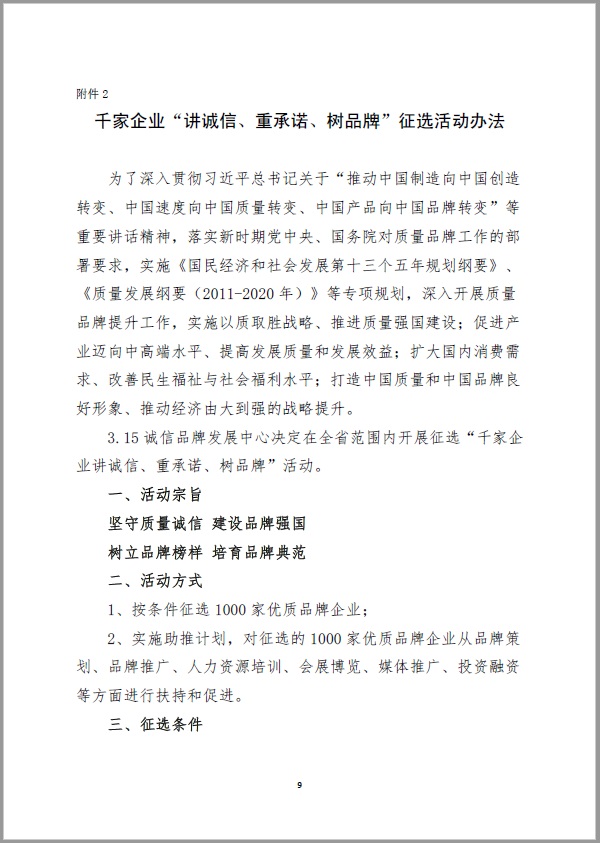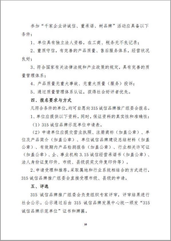 关于开展“千家企业讲诚信、重承诺、树品牌”活动的通知