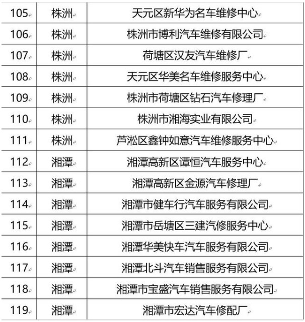 附:湖南省2017-2018年度机动车维修与检测行业“诚信企业”名单(排名不分先后)