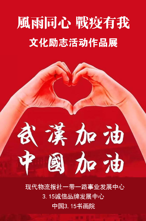 为了更大地激励和支持全国人民抗击疫情,支援一线战士,激发群众自觉自律阻击病毒,共同打赢抗击疫情阻击战、主动战。由现代物流报社一带一路事业发展中心、3.15诚信品牌发展中心、中国3.15书画院发起,在全国范围内开展以“风雨同心,战疫有我”为主题的文化励志活动。号召全国文化艺术工作者积极行动起来,创作一批全国人民抗击疫情的文化艺术作品。用我们特有的方式凝聚起全国人民抗击疫情的精神力量,彰显家国情怀和社会责任担当。充分表达人道主义精神和对生命的关爱,表达对医护人员的敬意和对武汉人民的坚定支持。更表达“风雨同心、战疫有我”,全力夺取新冠病毒防控战最终胜利的信心和决心。