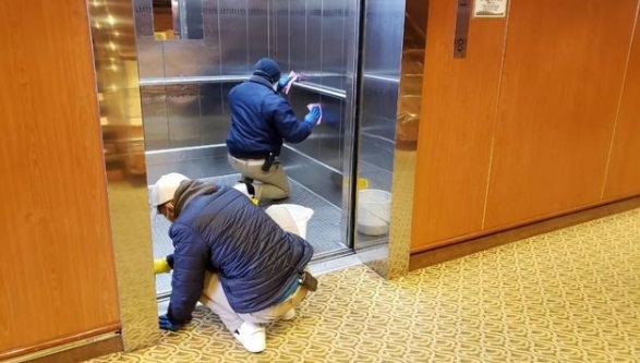 “餐厅的清洁上通常要经过三个流程(专门术语叫做‘ 3-bucket System’)。第一遍使用带泡沫的水洗刷,第二遍用热水,第三遍用漂白剂。肢体容易接触到的桌面和电梯按钮,都要用两种清洁剂,先除尘后消毒。”