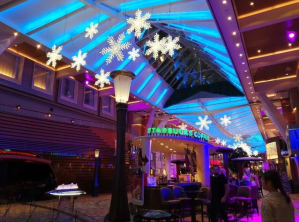 皇家加勒比绿洲号船内一角 王雨 图王雨所在的皇家加勒比绿洲号,被称为“目前全球最大、造价最高”的豪华邮轮,最多时可容纳6296名乘客及2000名船员。据王雨介绍,船上大概有二三十名中国籍员工,比较多的是来自印度、菲律宾、印尼、马来西亚、墨西哥的外籍员工。上船的第一周,所有员工都要进行各种各样的培训,了解船上的设备、整体结构、船舶安全、消防等知识。除此之外,每周还会进行逃生演习等。