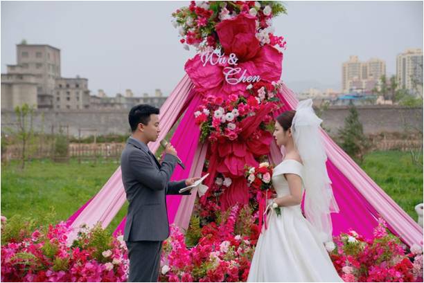 春晓苑启动后,武若迪、陈燕夫妇是第一对在这里举办婚礼的新人。“在这里办户外婚礼,不搭台子、不建场地,仪式温馨,但流程更简约了,更适应我们年轻人的需要。”武若迪提到,传统婚俗的繁复枷锁被轻轻卸下,年轻一代用简约庄重的仪式替代铺张排场,家人朋友都十分支持两人的选择,仪式非常圆满。