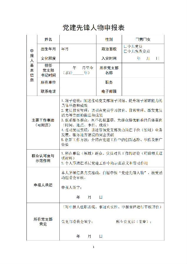 党建先锋人物申报表