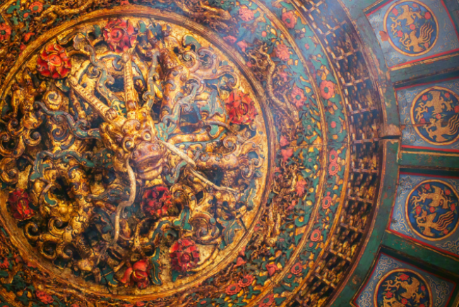 历年来,故宫博物院月饼的包装一直吸收故宫藏品中的优秀元素。今年故宫上新的月饼礼盒,选取了御花园千秋亭与万春亭两款建筑,亭内穹顶正是以藻井闻名。