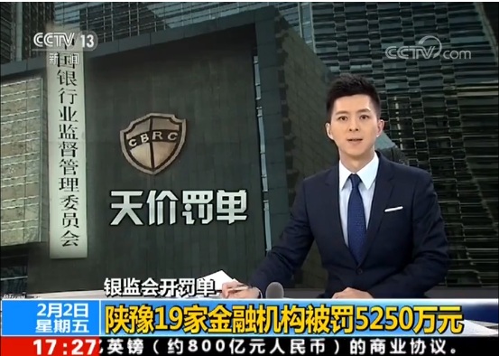 银监会开罚单陕豫19家金融机构被罚5250万元
