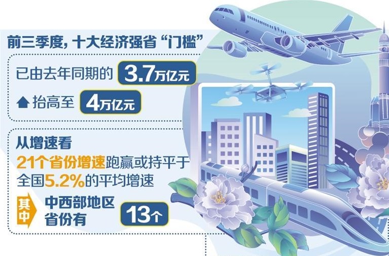 前三季度十大经济强省“门槛”跃上4万亿元台阶——地区经
